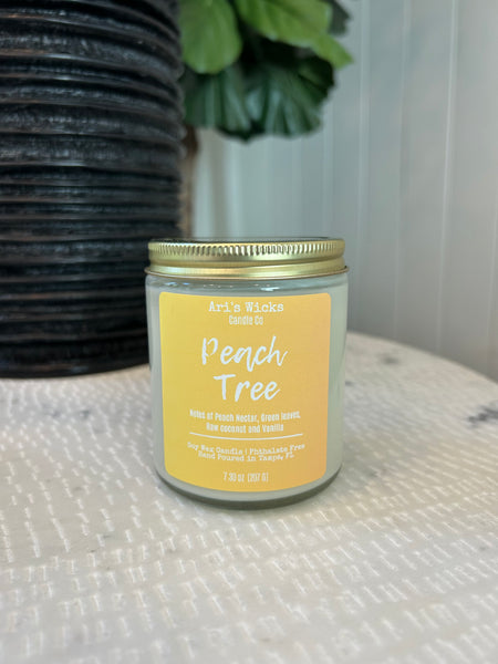 Peach Tree: Indulge in the sweet and sun-kissed essence of a peach orchard with this beautifully layered Peach Tree candle. The fragrance opens with the tropical richness of Raw Coconut and the tangy brightness of Sunkissed Raspberry and Mandarin Orange, creating an irresistible fruity burst. A heart of Violet Petals and Succulent Plum adds depth and floral sweetness, perfectly balanced by the luscious Peach Nectar that ties everything together. The base notes of Sugar and Vanilla add a creamy, comforting sweetness, leaving behind a warm, inviting scent. A perfect scent for any space that needs a touch of summer all year round. (Contains Essential Oils: Bergamot Oil)