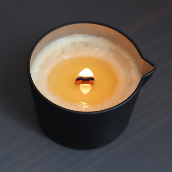 Designed for relaxation, and connection, this 6 oz Massage Oil Candle transforms any moment into a luxurious sensory experience. Thoughtfully crafted to melt into a warm, silky massage oil, this candle is the most effortless and elegant way to enjoy a massage candle because of the pouring spout. No waste, no mess just pure indulgence. Candle comes with a lid.
